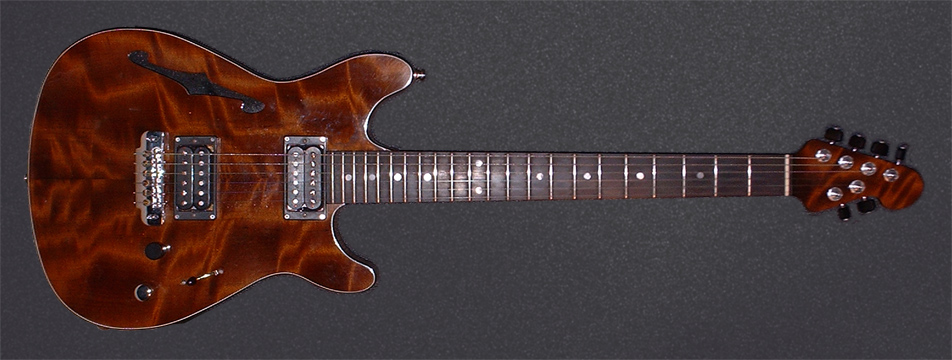 first 100% original design. Aimed at solving the neck dive problem on Thinline single cut 6-inline guitars